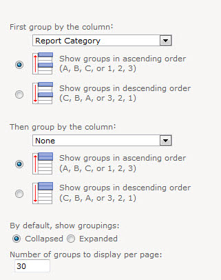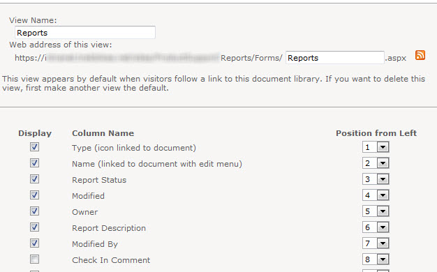 The main Reports view in the Reports library is or can become the default view for the site. This is the way you want the reports to be presented a majority of the time, so it’s up to you to determine what besides the reports themselves needs to be immediately available upon navigating to this library.