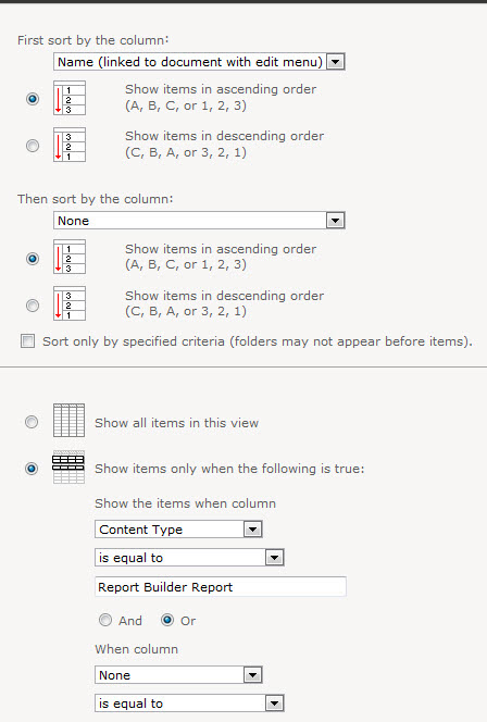 Content sort order & filtering to just reports – no data sources (would just be confusing):