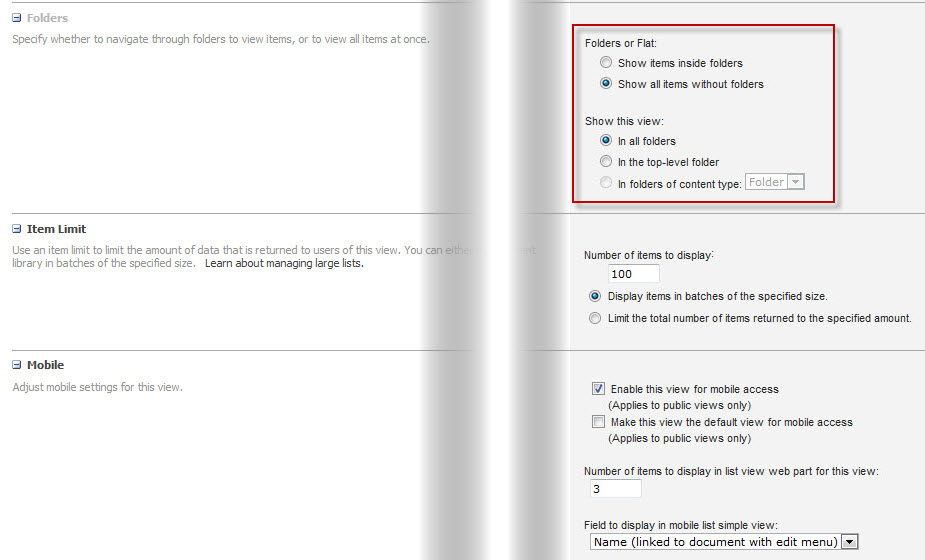 If you do need to build a few subfolders into your report library to manage a few reports that need to be specially secured, or to provide a “development/in progress copies” space, you will want to configure the Folders section: